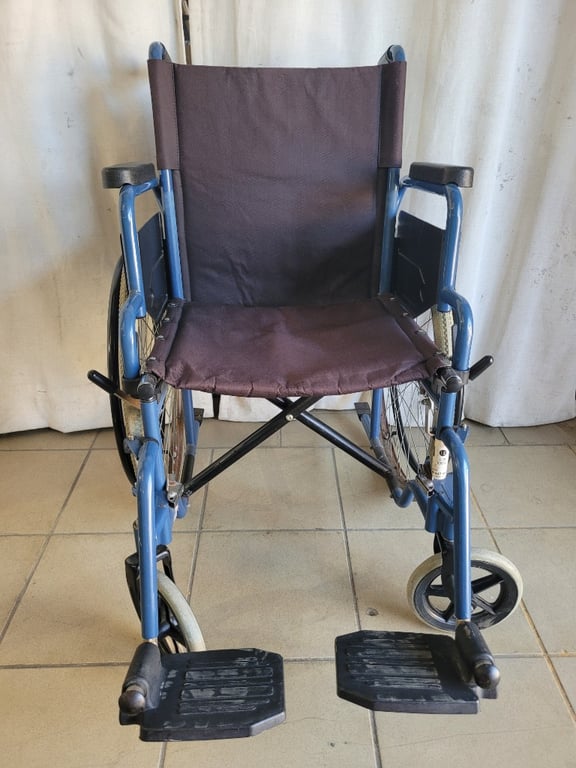 Wheelchair, 4 Wheels, Footrest, Storage Area, Black & Blue FinishDimensions H:90cm W:64cm D:107cm