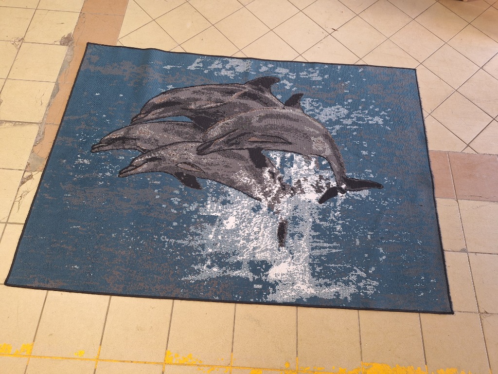 Carpet, design on rug, dark shade carpet.Dimensions: H 1cm x W 227cm x D 161cm.