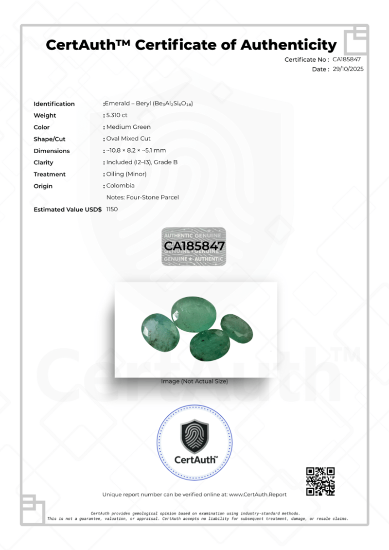 COLOMBIAN EMERALD PARCEL – 5.31CT TOTAL, CERTIFIED BY CERTAUTH™