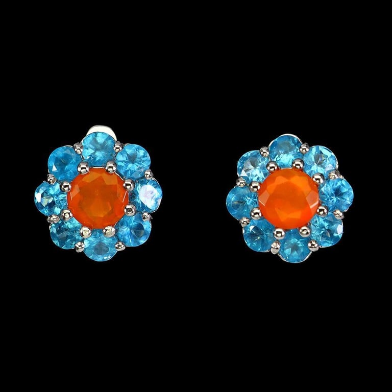 NATURAL ORANGE OPAL & APATITE EARRINGS. Natural Orange Opal & Apatite Earrings. Made In Solid Sterling Silver And Plated In14K White Gold. Features Natural Orange Opal And Natural Blue Apatite. Earrings Measure 11X11Mm. Condition: Good - Refer Images 0488241+24