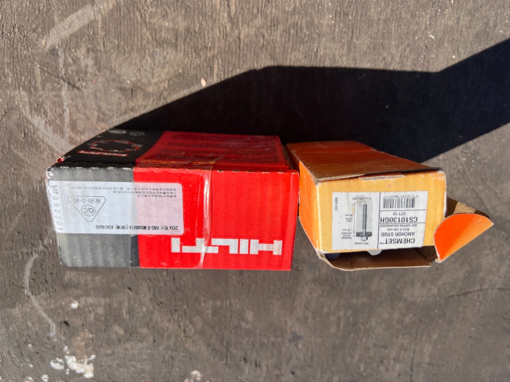 1 x 20 M8x80/14 / 1 x 10 Chemset Anchor StudsBoth New In BoxSOLD AS ISLocation: #MACKAYContact Kyle Haywood | Ph 0487 020 888 | [email protected]Holding Yard 3/263 Connors Road, Paget , MACKAY QLD, Australia