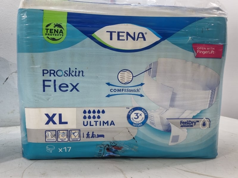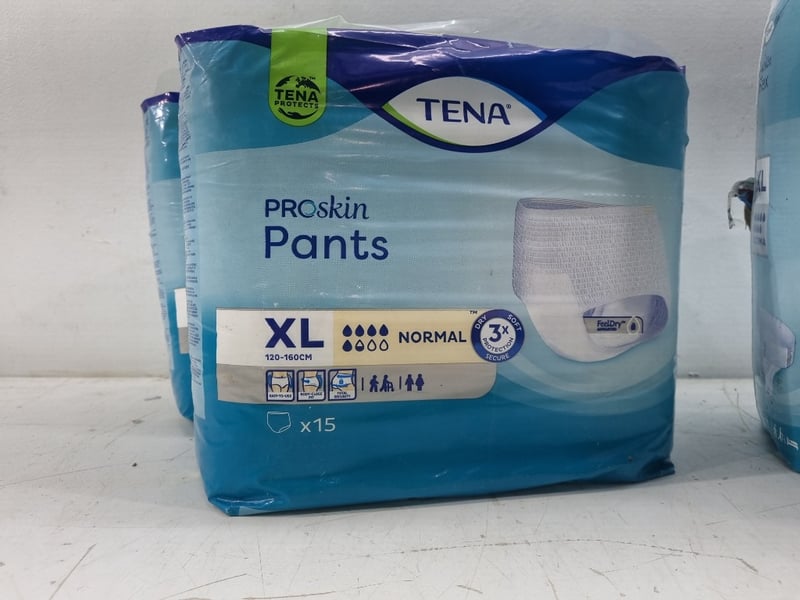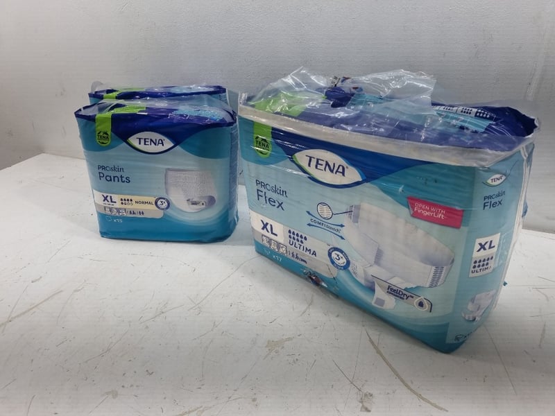 Tena Proskin Pants, Includes 2x Packs of Normal Size XL 120-160XL 15x Per Pack, And Proskin Flex Ultima Size XL Pack of 17x Sold As lot