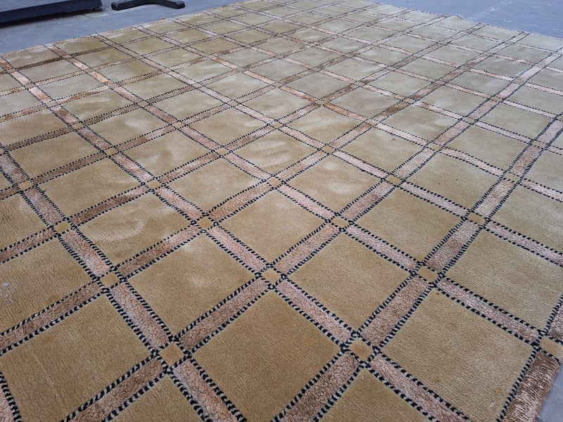 Large Rug, Grid Pattern, Orange & Tan FinishDimensions H:3cm W:308cm D:255cm
