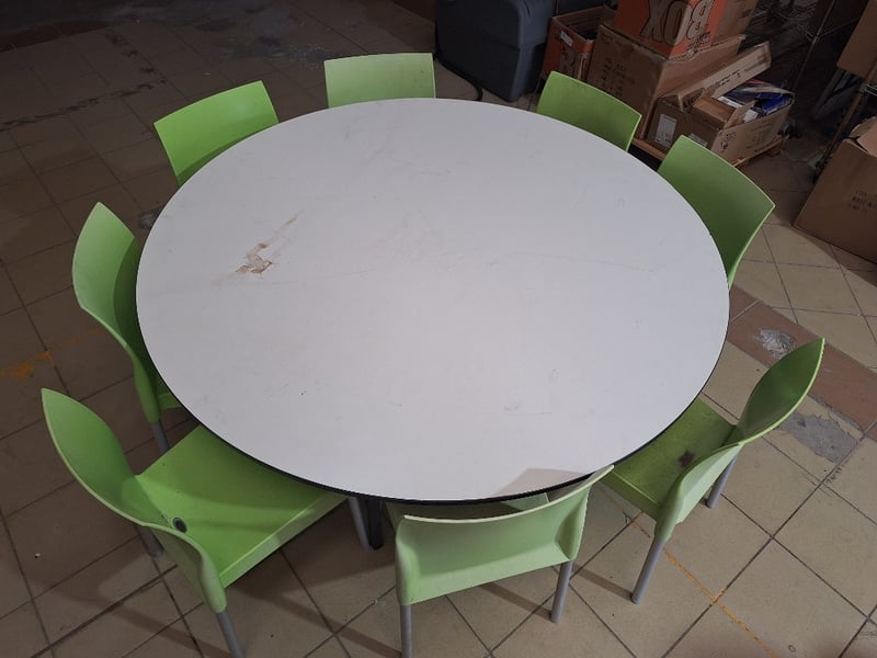 Event 8-Seater Table & Chairs, Timber & Plastic Style, White & Green Finish