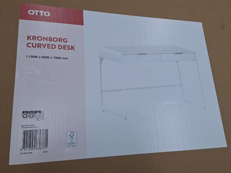 RRP $169 Otto Kronborg Curved Desk White OTKRODSKWE
