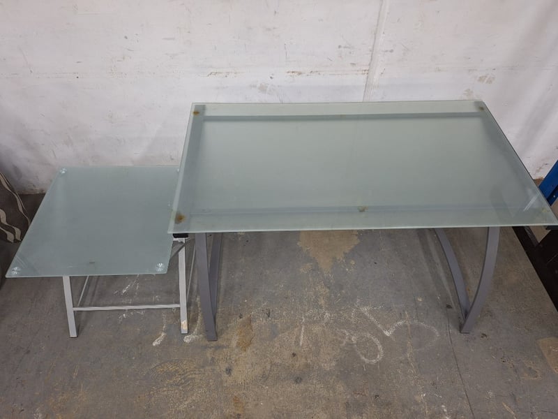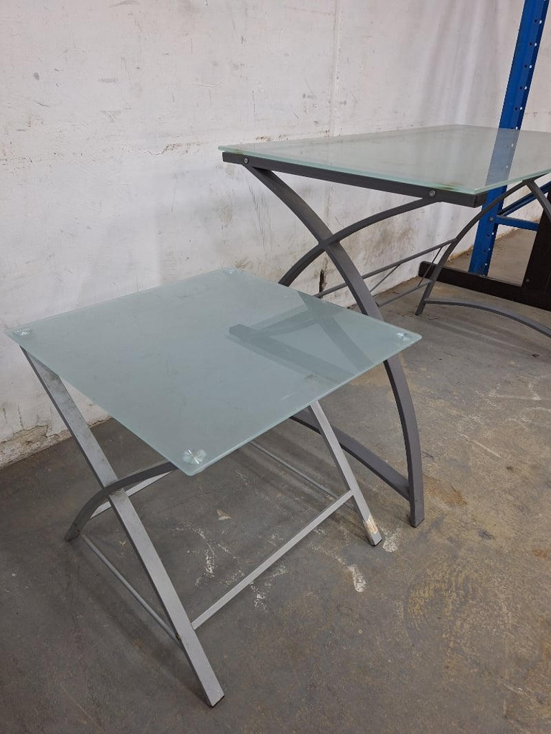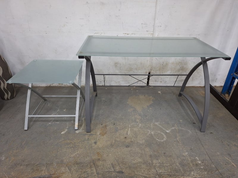 Desk & Side Table, Glass Top, Metal Style