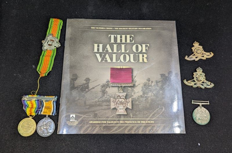 'THE HALL OF VALOUR' COMMEMORATIVE STAMP COLLECTION AND COLLECTION OF MEDALS Condition: Good - Refer To Images 584909+5