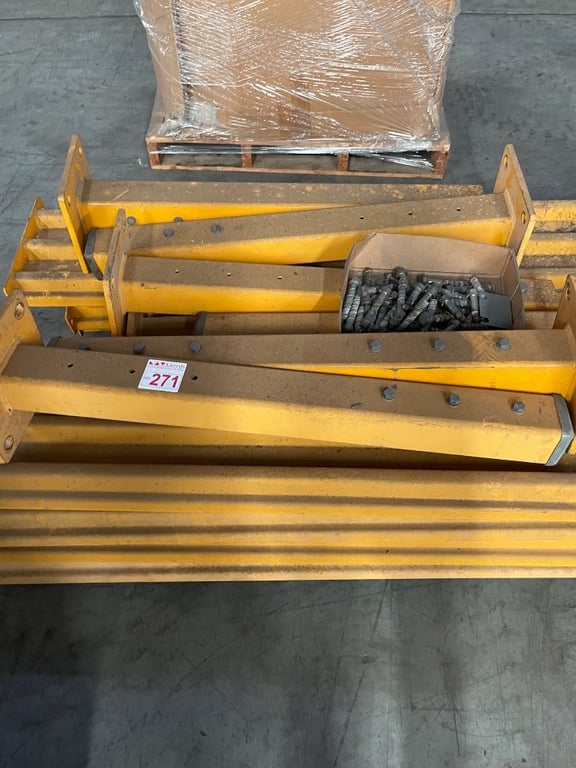 Metal Beams, pallet lot Approx Beams Dimensions, 1.1m x 25cm x 25cm Approx "Shelf" Dimensions, 1.72m x 38cm x 10cm SOLD AS LOT