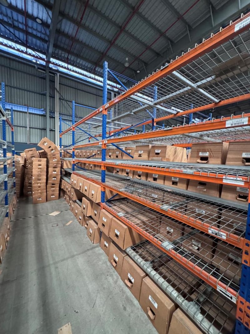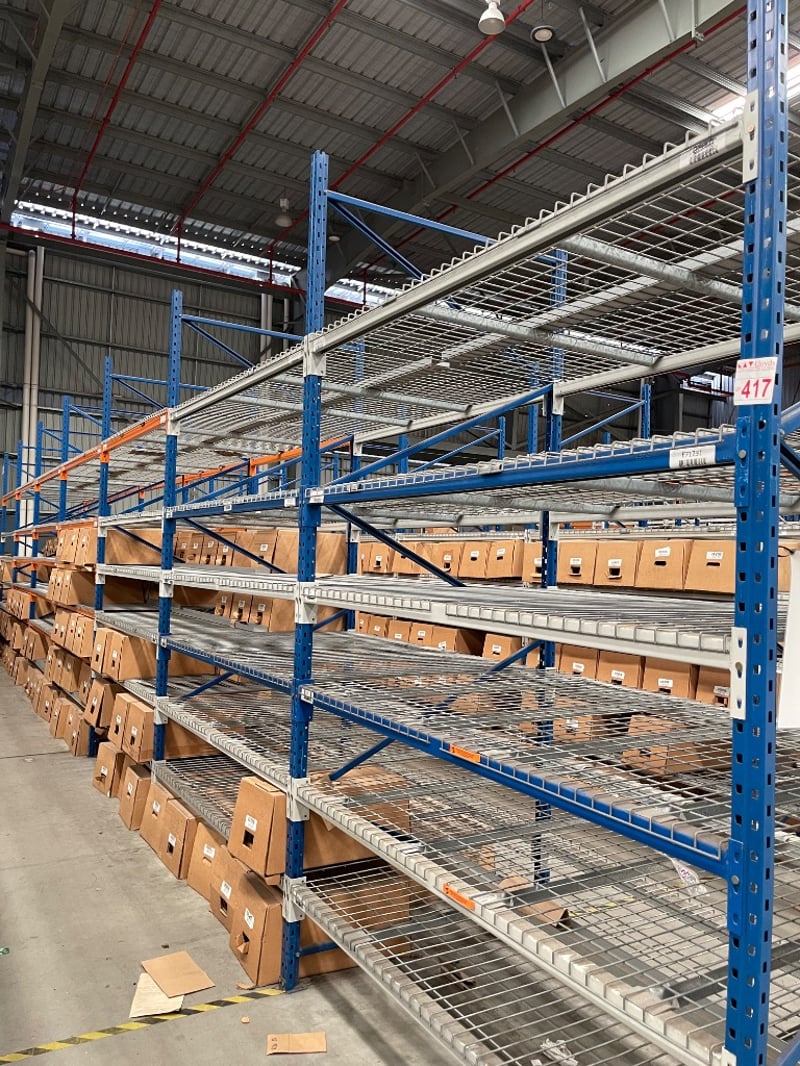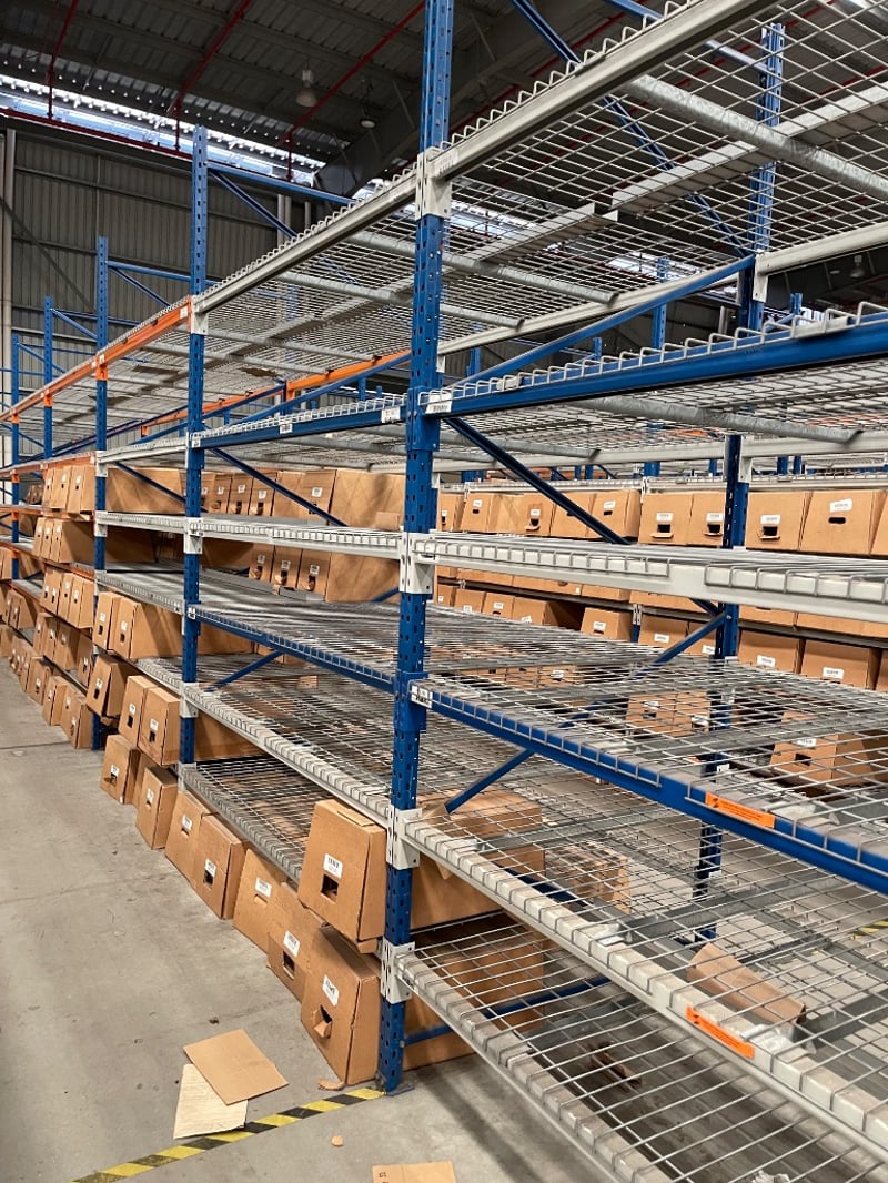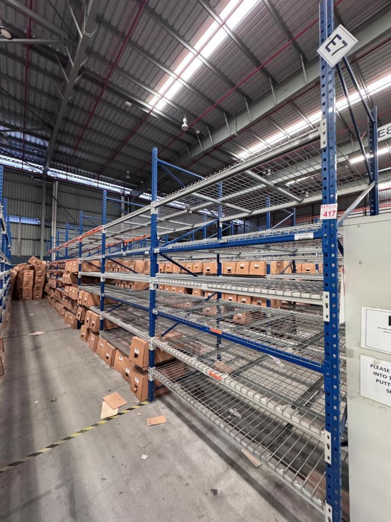 Shelving Unit, Medium Strength, 7 Sections, 6 shelves per section, boxes on shelves included.