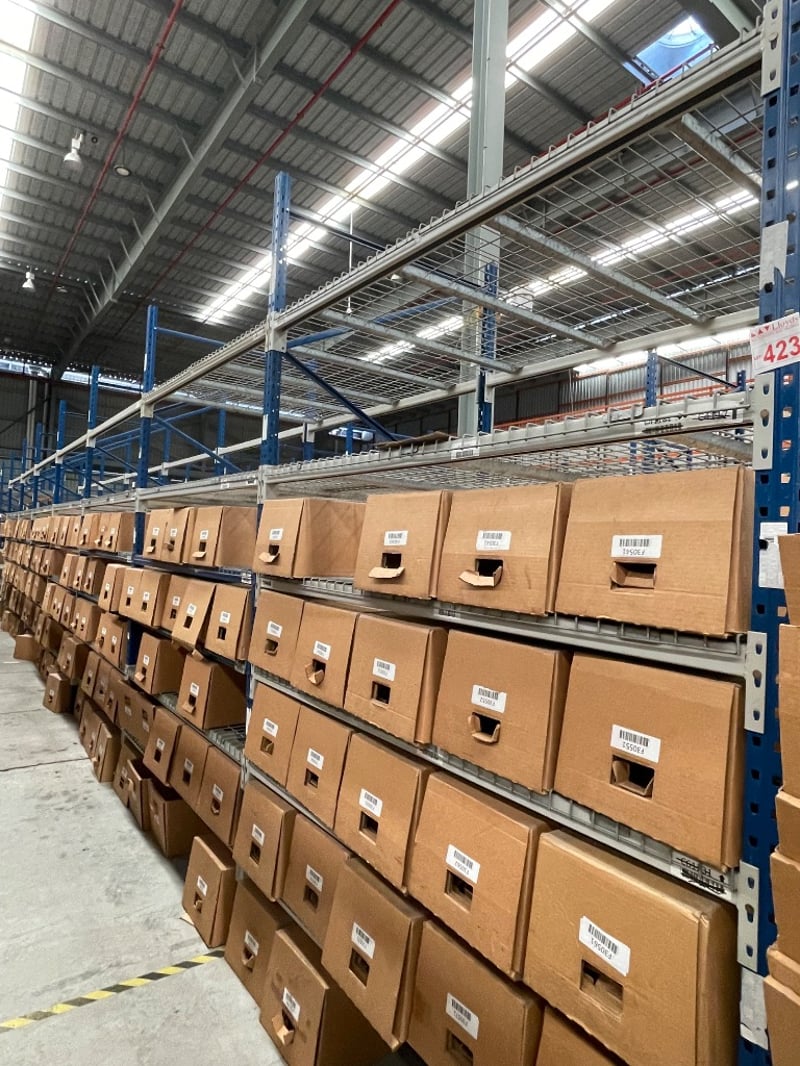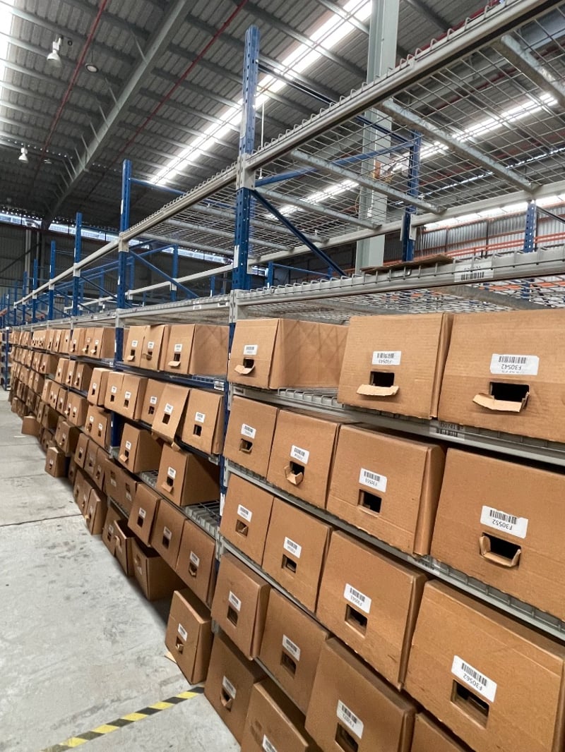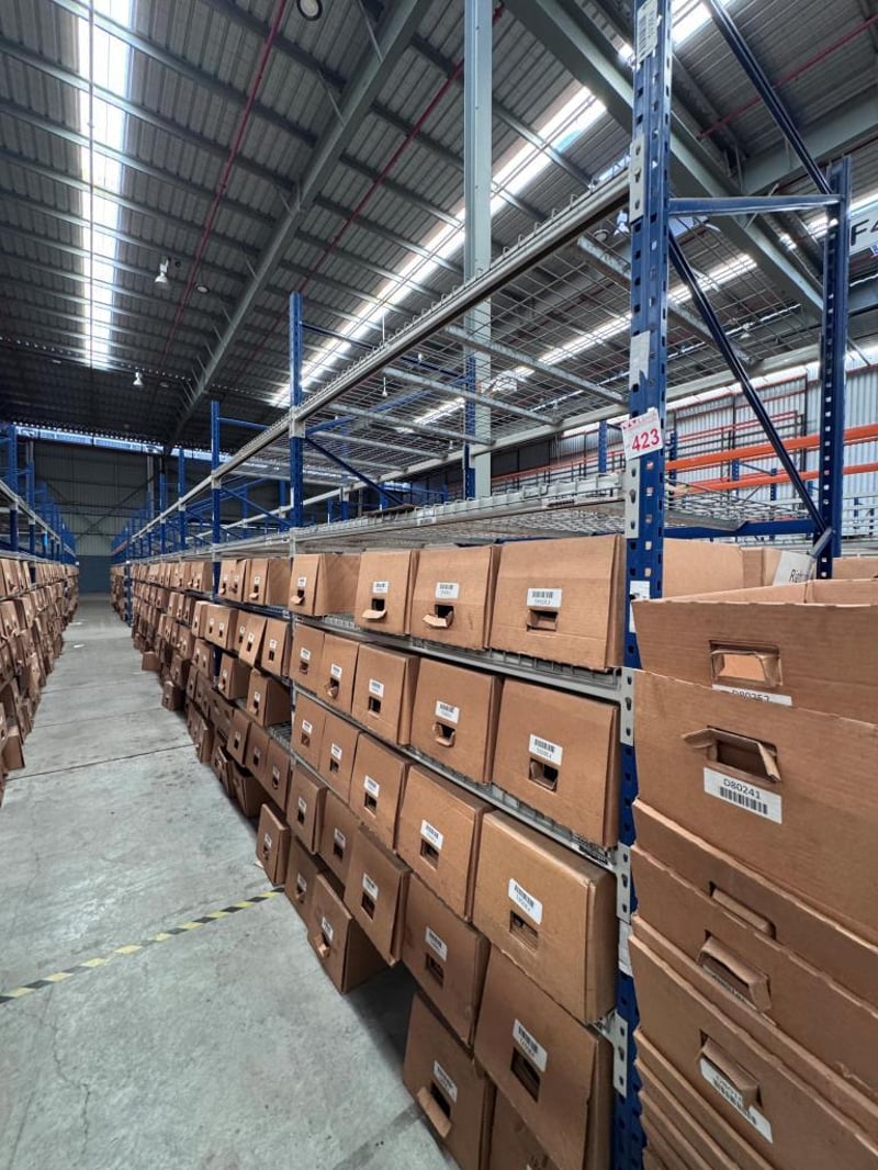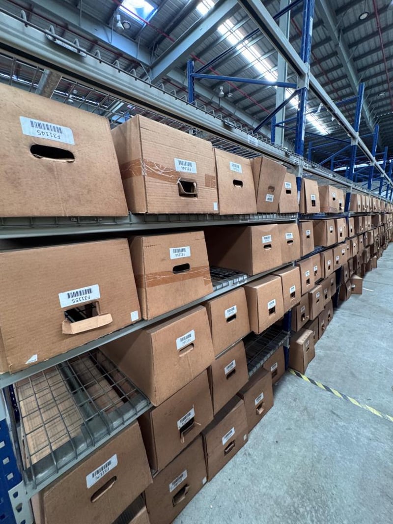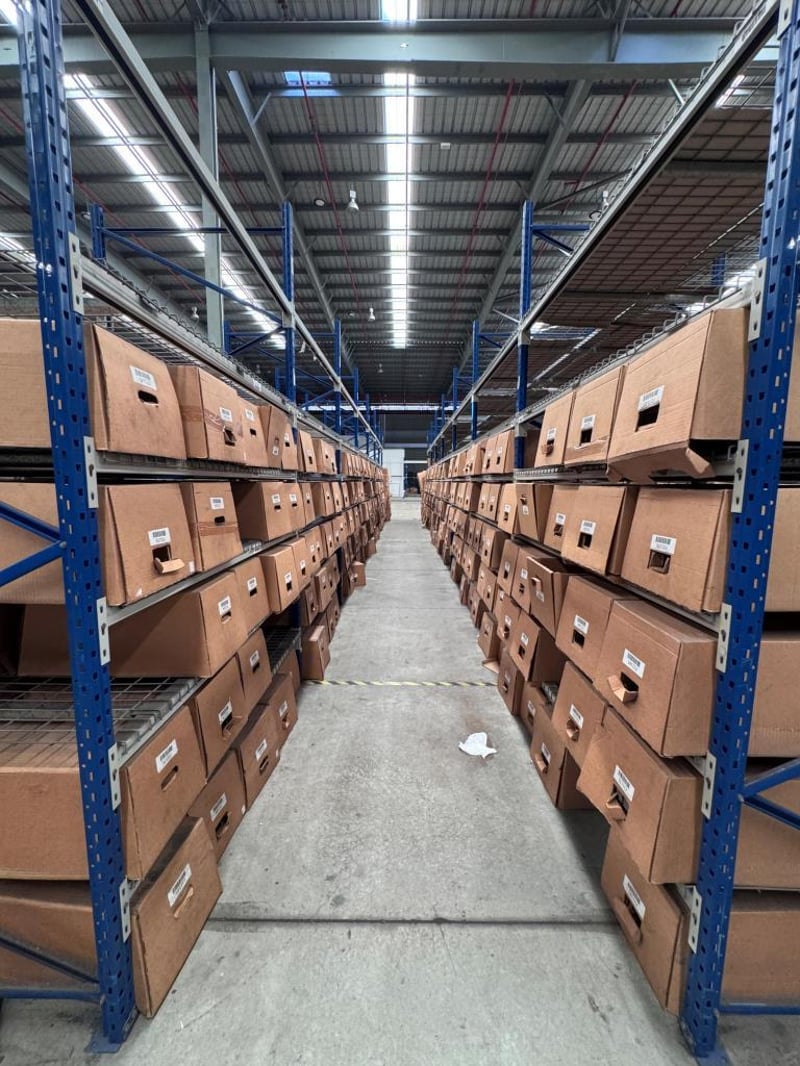 Shelving Unit, Medium Strength, 7 Sections, 6 shelves per section, boxes on shelves included.