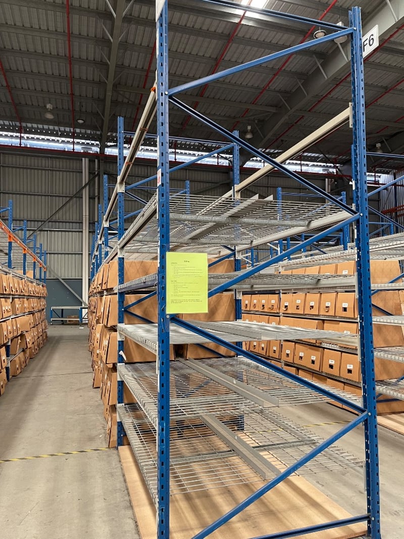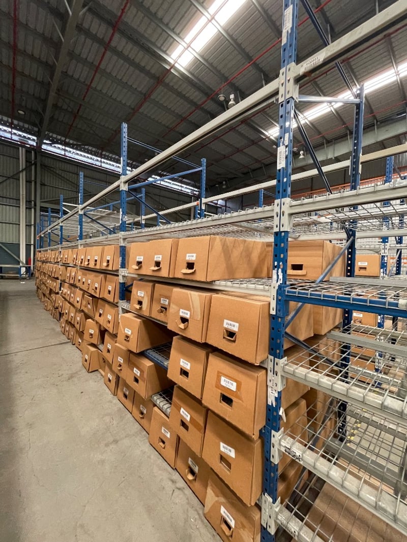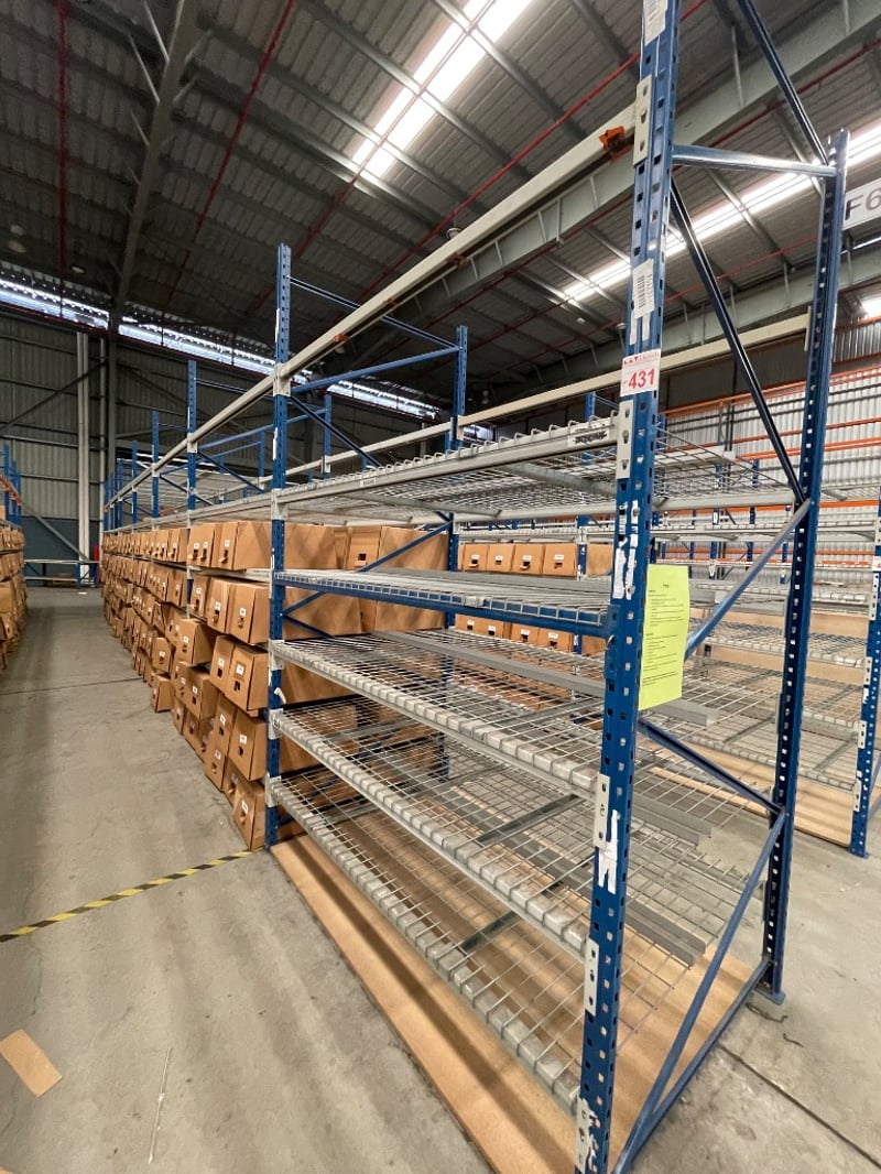 Shelving Unit, Medium Strength, 7 Sections, 5 shelves per section, boxes on shelves included.