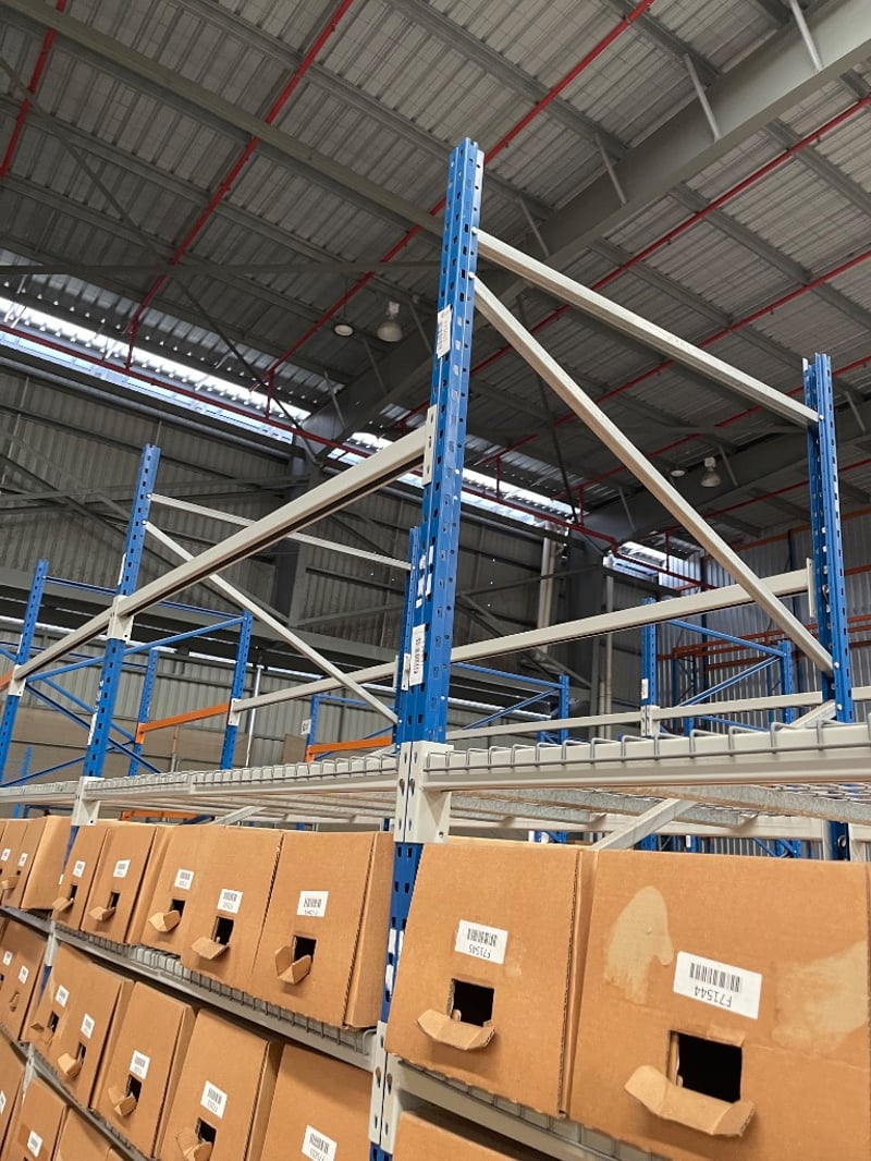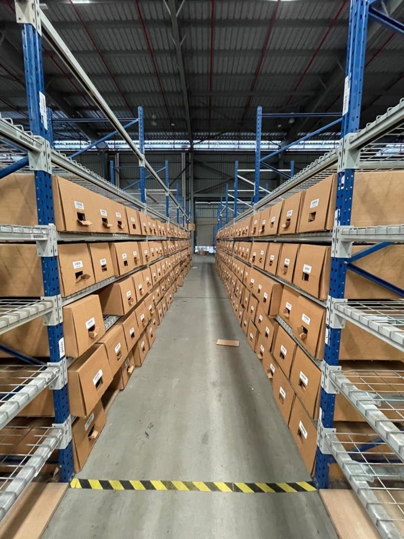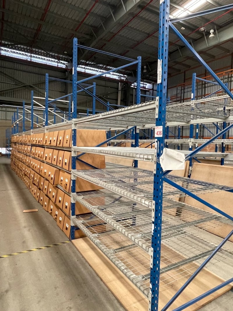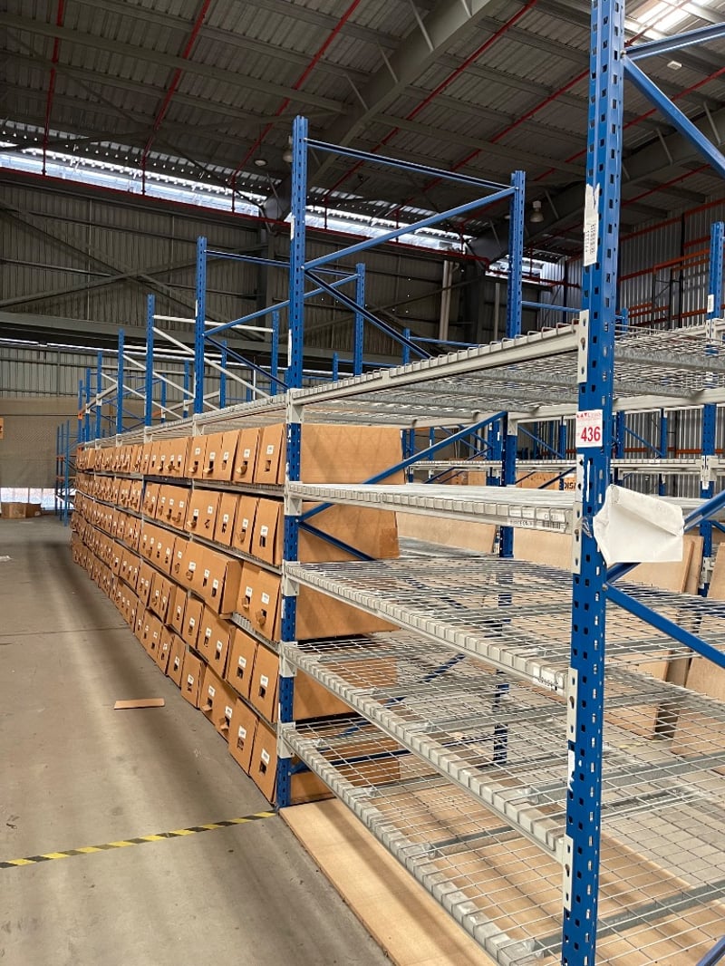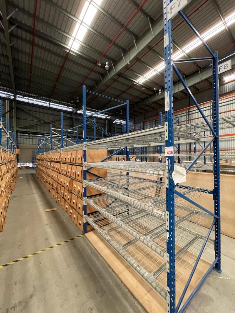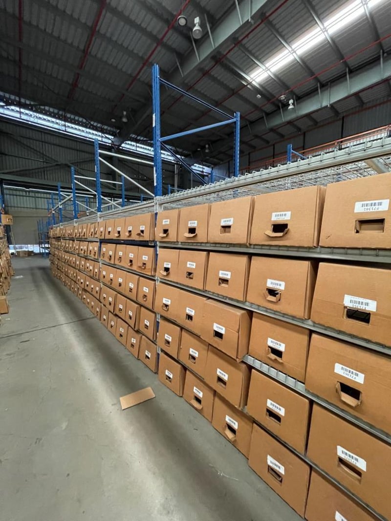 Shelving Unit, Medium Strength, 7 Sections, 5 shelves per section, boxes on shelves included.