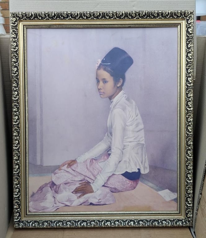 VINTAGE FRAMED PRINT OF BURMESE PRINCESS SAW OHN NYUN PAINTED BY SIR GERALD KELLY 70CM X 59CM