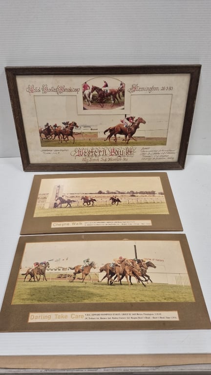 ASSORTED VINTAGE HORSE RACING WINNERS PHOTO MEMORABILIA WESTERN BAY 1ST 1980 DARLING TAKE CARE 1ST 1981 CHEYNE WALK 1ST 1976 Condition: Fair - Refer To Images LOCATED RACK 13A 587652+2