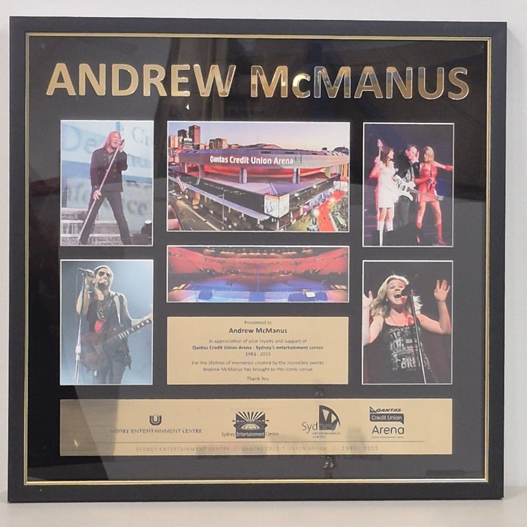 FRAMED MEMORABILIA DEDICATED TO ANDREW MCMANUS