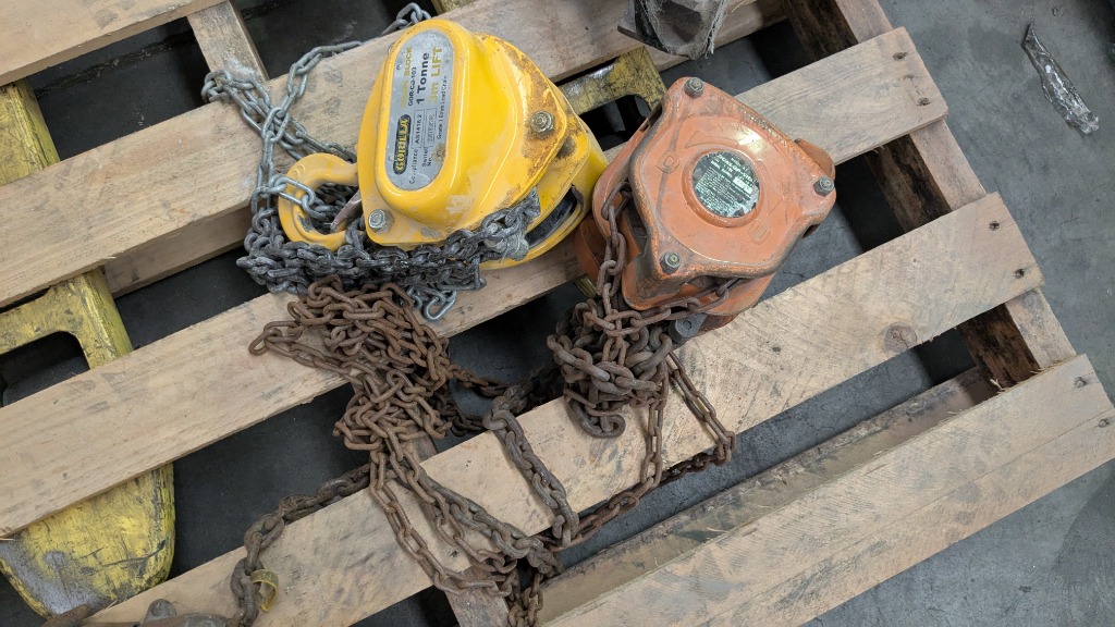 Assorted 1t Chain Blocks, Gorilla and Dunlop Vital, Quantity 2 SOLD AS LOT NOTE: INSPECTIONS HIGHLY RECOMMENDED