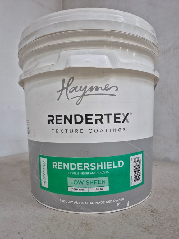PAINT, HAYMES, RENDERTEX, LOW SHEEN, DEEP TINT, 15LBID PER LITRE, MUST TAKE 15 LITRES