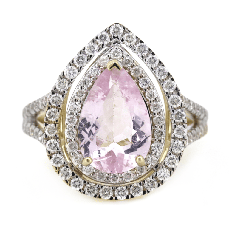 14K YELLOW GOLD, MORGANITE AND DIAMOND, DOUBLE HALO RING. The Centre Features, One Pear Cut, Morganite (2.44Ct, Light Natural Inclusions), Prong/Claw Set. Surrounding The Centre In A Double Halo And Decorating The Split Band Are, 81 Round Brilliant Cut, Diamonds (0.74Ct Tdw, H-I Colour, Si-I1 Clarity), Micro-Claw/Bead Set In White Gold. Ring Size M. Valuations Provided by an Independent Third-Party Professional Not Directly Associated With Lloyds Auctions at AUD $$14,200.00This valuation has been conducted by an independent third-party professional. The valuation amount is an assessment by the issuing valuer and does not reflect the auction value of the item. Any inquiries regarding the valuation should be directed to the issuing valuer (refer to contact details on the certificate), as Lloyds Auctions has no affiliation or influence over the valuation, the valuer, or the stated amount. Condition: Good - Refer Images 0586122+19
