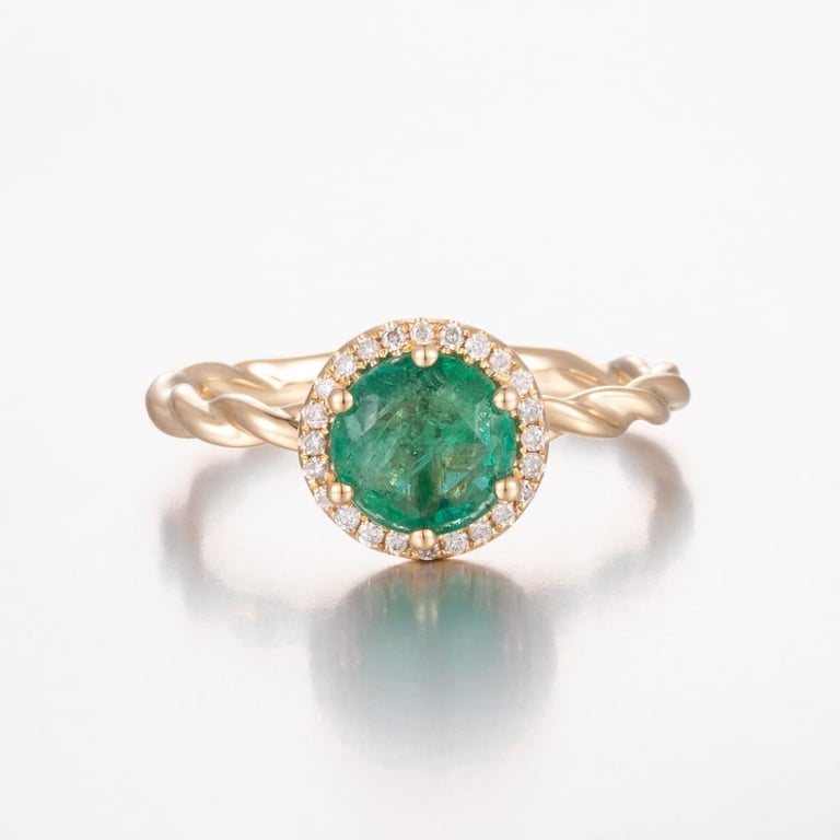 14CT YELLOW GOLD ZAMBIAN EMERALD AND DIAMOND HALO RING. Featuring Centre, One Round Cut, Deep Moderate Greenish-Blue Zambian Emerald (1.44Ct Slightly Included), Claw Set, With 24 Round Brilliant Cut Diamonds (0.09Ct Tdw, G-H Colour, Vs1-Vs2 Clarity), Bead Set. Ring Size O Valuations Provided by an Independent Third-Party Professional Not Directly Associated With Lloyds Auctions at AUD $18000This valuation has been conducted by an independent third-party professional. The valuation amount is an assessment by the issuing valuer and does not reflect the auction value of the item. Any inquiries regarding the valuation should be directed to the issuing valuer (refer to contact details on the certificate), as Lloyds Auctions has no affiliation or influence over the valuation, the valuer, or the stated amount. Condition: Good - Refer Images 0587670+1224