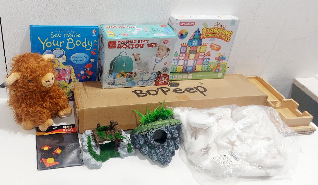 Pretend Play Doctor Set, 66 piece Starshine Magnetic Tiles, Cow Plush Toy & more