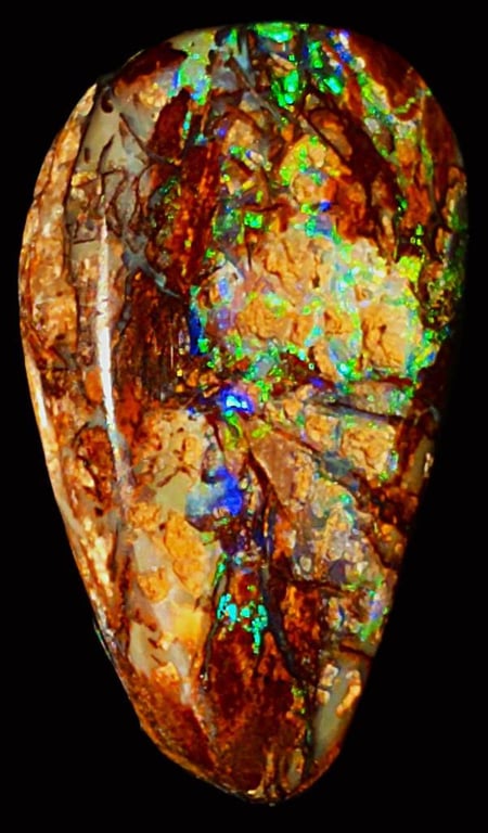 28 CARATS WINTON BOULDER OPAL. Very Colourful Stone. Bright Greens Royal Blues. 26X16X8 Condition: Good - Refer Images 0586113+56