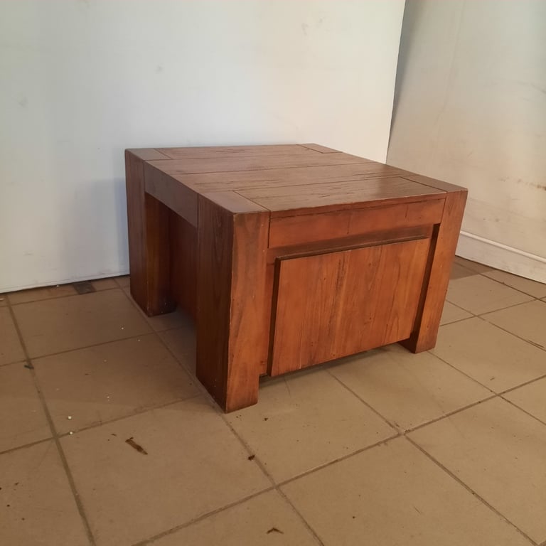 Coffee table, timber finish, brown colour finish , square shape.Dimensions: H 45cm x W 65cm x D 65cm