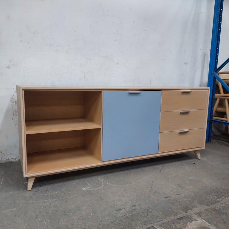 Sideboard, One door, open shelf and 3 drawers, timber finish, metal drawer and side door handle.