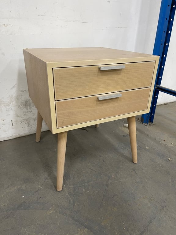 Bedside table, Brown finish, 2 drawers with metal handlesNote: no glass top suppliedNote: Possible Signs of Wear and TearH: 60cm W: 50 D: 50BID PER EACH