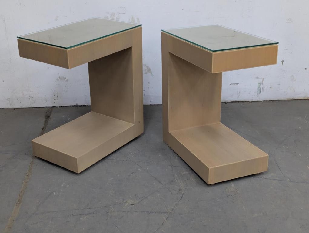 Timber C shape bedside table with unfixed glass top