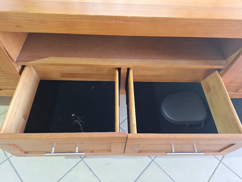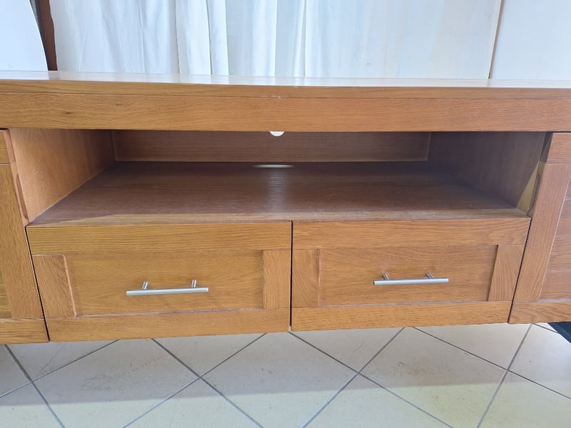 Large Entertainment Unit With Storage, Timber Style, Natural Finish