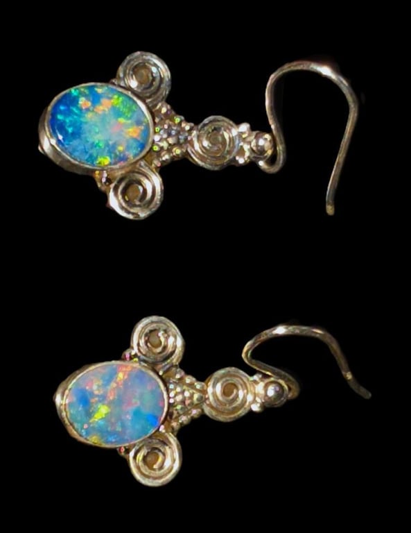 20 CARATS STERLING SILVER. And Lightning Ridge Opal Hook Earrings Condition: Good - Refer Images 0587671+34