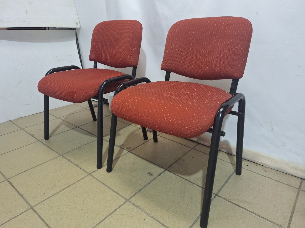 2 x Office Chairs, Mapal, Fabric Upholstery Seat and Back Rest, Stackable Chairs, Metal Frame. Dimensions: H 85cm x W 64cm x D 66cm. SOLD AS LOT.