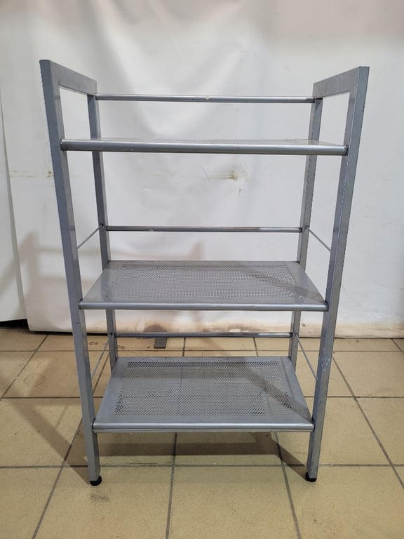 3 Tier Storage Shelves, Kitchen Storage or Tool Storage, Silver Metal Style FinishDimensions H: 102cm W: 35cm D: 61cm