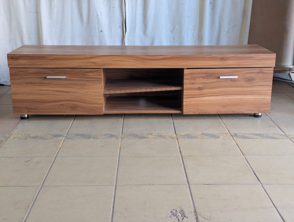 Entertainment unit, timber, central shelves, 2 x side cupboards