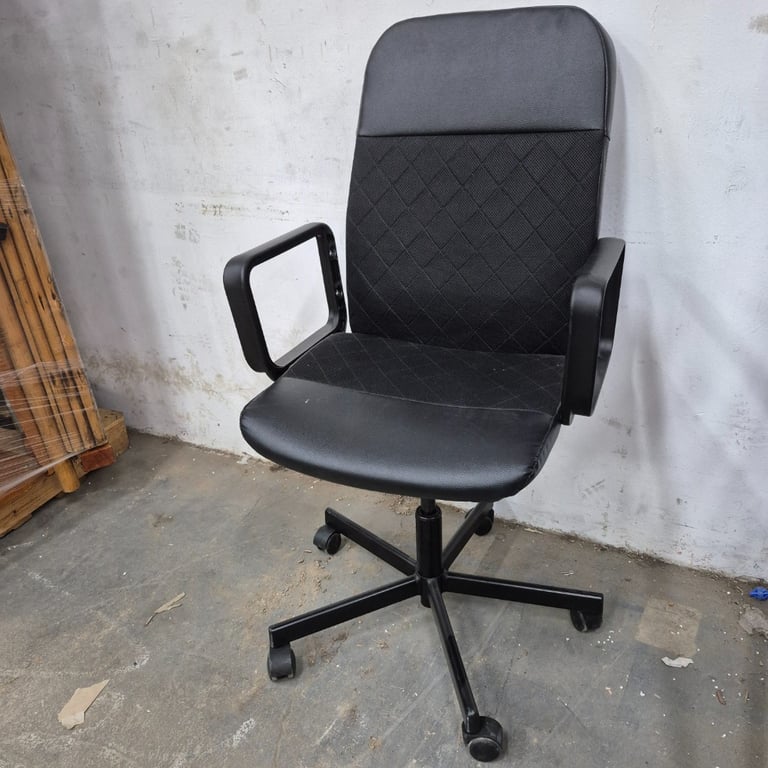 2 x black swivel office chairs, adjustable height lever, black colour finish Dimensions: H 150cm x W 68cm x D 72cm SOLD AS LOT