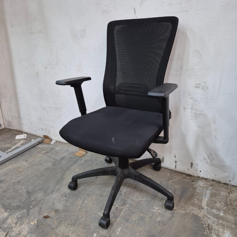 1 x black swivel chair, arm Rests, adjustable height lever, wheels, cushion seats Dimensions: H 125cm x 72cm x D 75cm