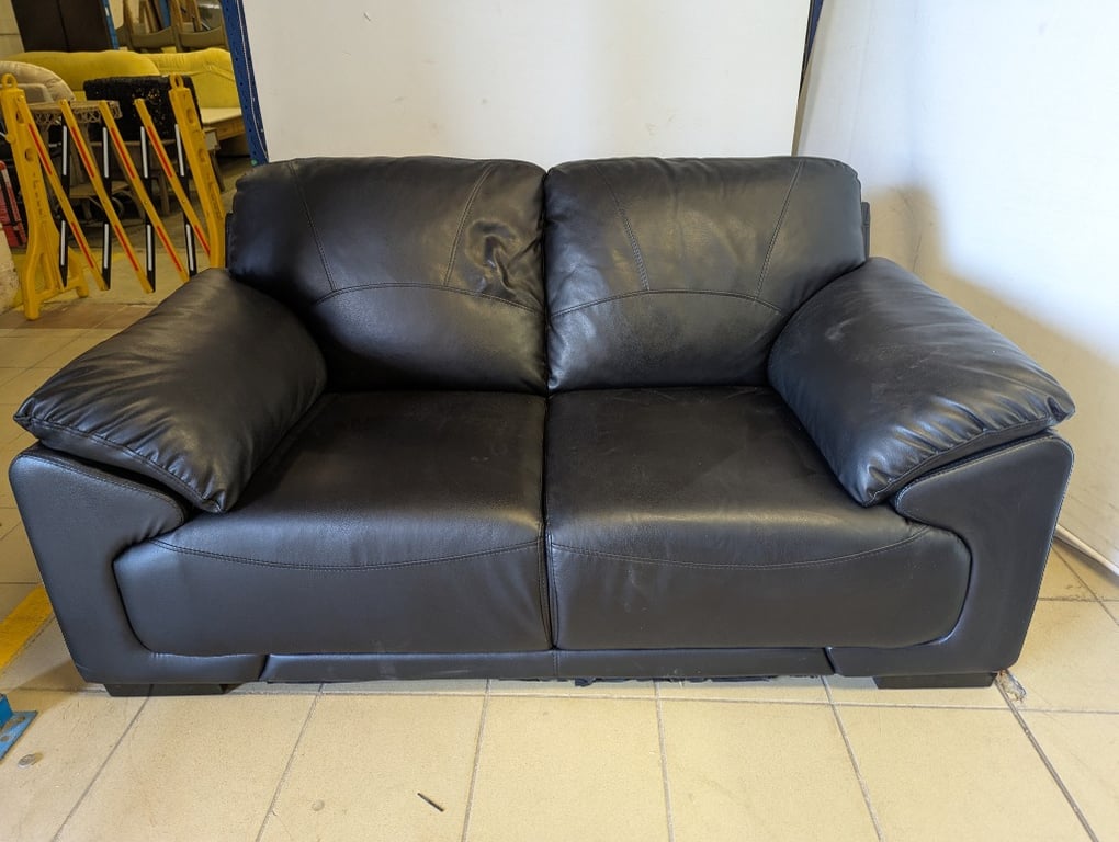 Couch, 2 seater, black finish leather styleDimensions: H 80cm x W 165cm x D 90cm
