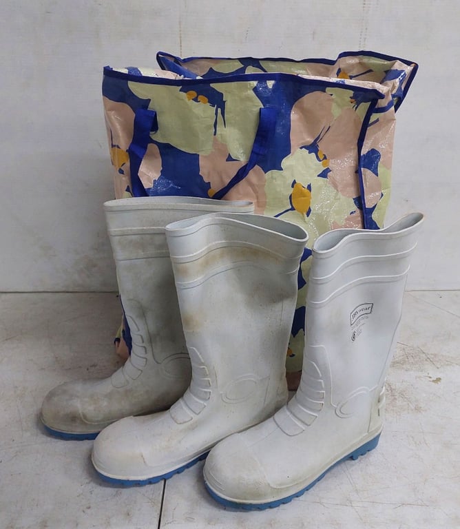 Assorted Lot of Gumboots, Brand: JB's Wear, White and Blue Finish, Around 6 Pairs Sold as lot
