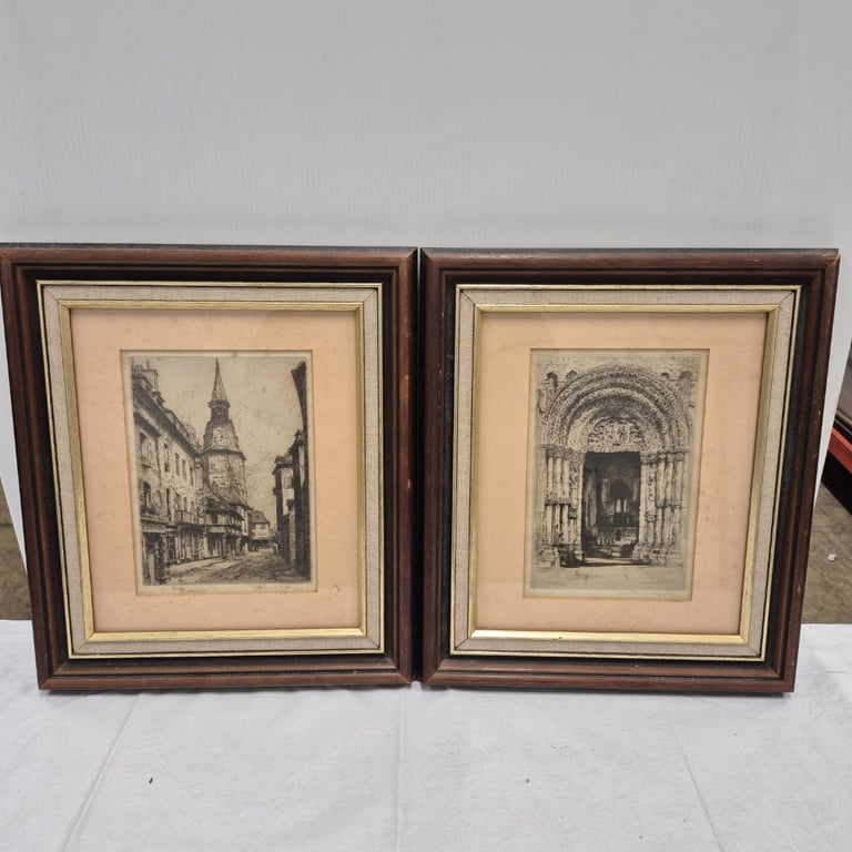 2 WOODEN FRAMED ETCHING STREET SCENE Item Size: Height: 39cm, Width: 34cm, Depth: 3cm Condition: Good - Refer To Images 587668+6
