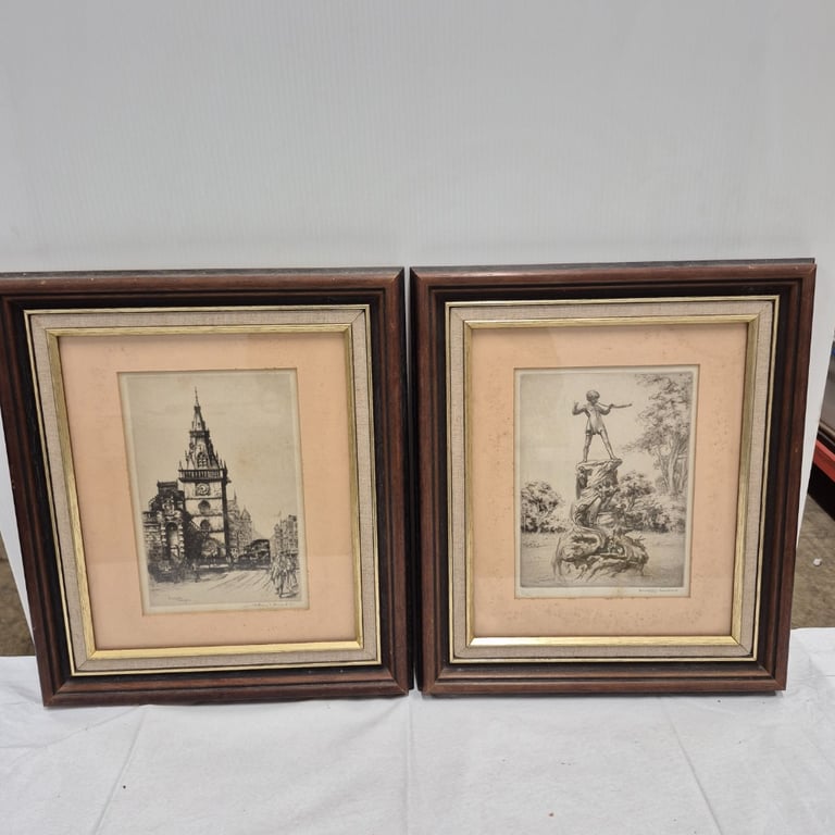 2 WOODEN FRAMED ETCHING STREET SCENE