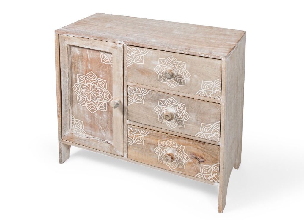 RRP: $250, Bedside Table, Model: FFWAL04 Material: Mango Wood & MDF Colour: Natural with Burning effect Shape: Rectangular Overall Size : L 50 cm X H 45 cm B 23 cm BID PER EACH