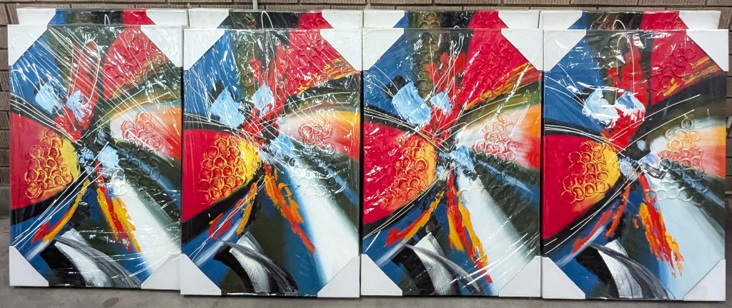 EIGHT OIL PAINTING ON CANVAS ARTWORKSItem Size: Height: 90cm, Width: 60cmArtworks Features Abstract Design With Various ColoursArtwork Stretched And Ready To HangCondition: Good - Refer To Images584844+39