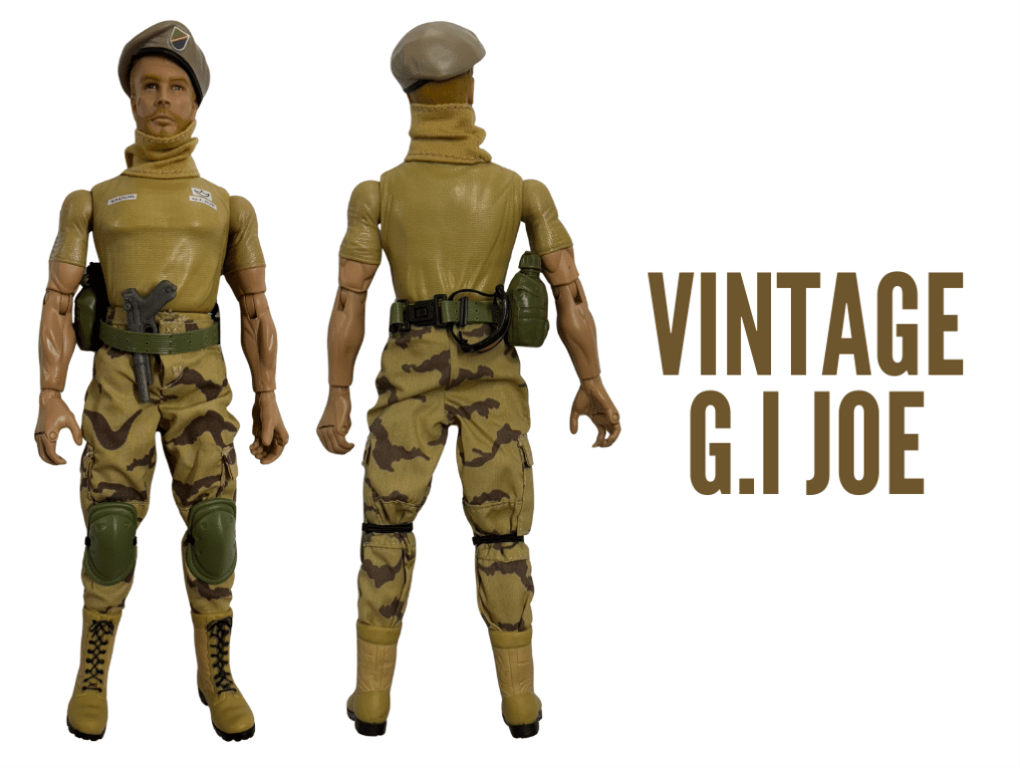 G.I. JOE ACTION FIGURE – MILITARY UNIFORM WITH GEAR Classic G.I. Joe Action Figure Wearing Camo Fatigues, Complete With Accessories Including Utility Belt, Boots, Helmet, And Holster. Displayed Front And Back. Appears In Excellent Condition For Its Age And Perfect For Collectors. - Military-Style G.I. Joe Figure - Includes Uniform, Belt, Helmet, Holster - Full Front And Rear Image Shown - Classic Articulated Body Design Disclaimer: Minor Imperfections May Exist On Figures Or Accessories. 584868+2