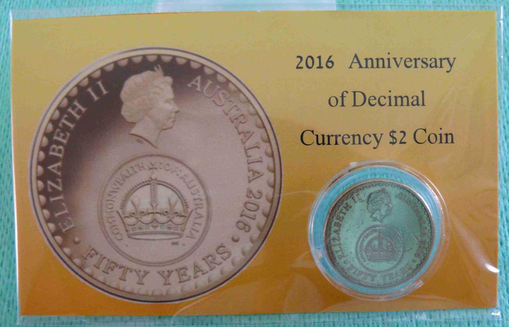2016 50TH. ANNIVERSARY OF DECIMAL CURRENCY, CARDED $2 COIN. 488256+6
