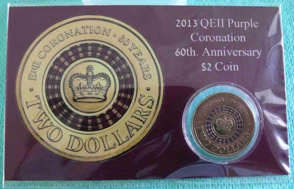2013 QUEEN PURPLE CORONATION, CARDED $2 COIN. 488256+2