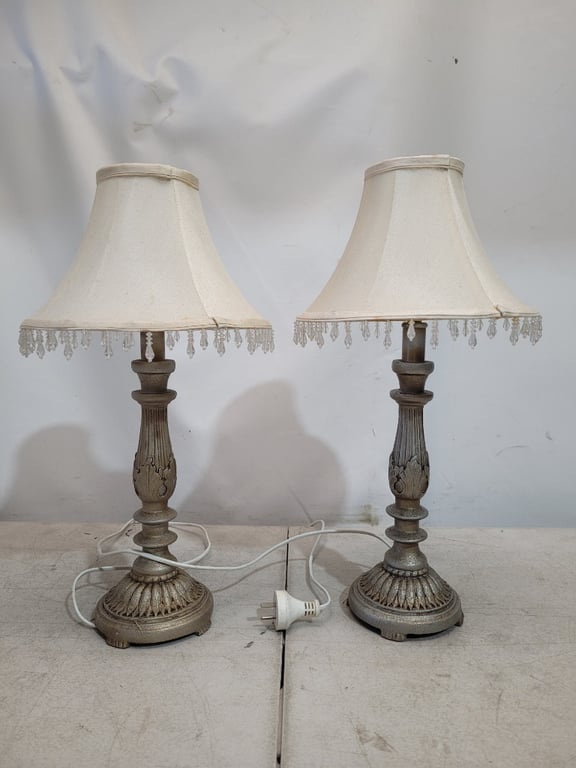 Table Lamps with Beads, Metal Style, White & Silver FinishDimensions H:50cm W:25cm D:25cmSOLD AS LOT