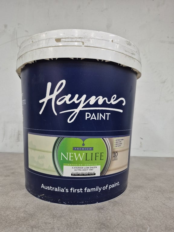 PAINT, HAYMES, PREMIUM NEW LIFE, EXTERIOR LOW SHEEN, ULTRA DEEP TINT, 15LBID PER LITRE, MUST TAKE 15 LITRES