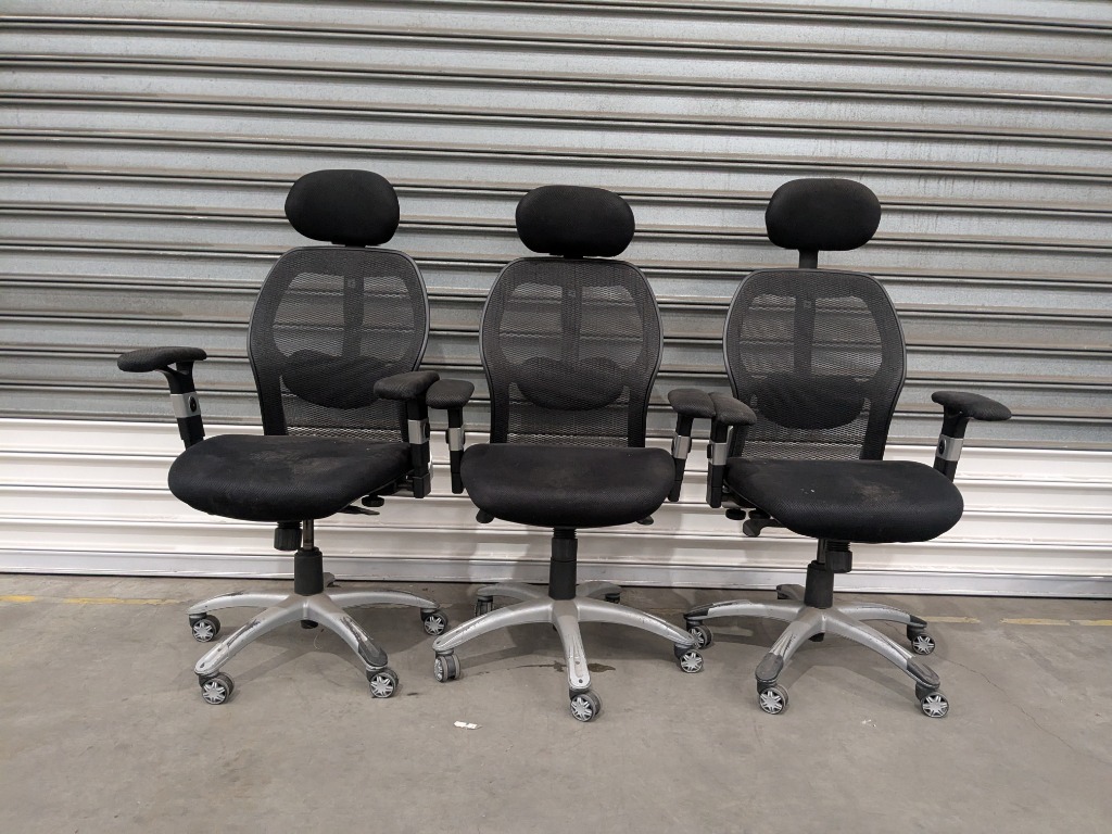 Ergonomic Office Chair with Headrest and mesh Back, 3x Chairs Sold as Lot.