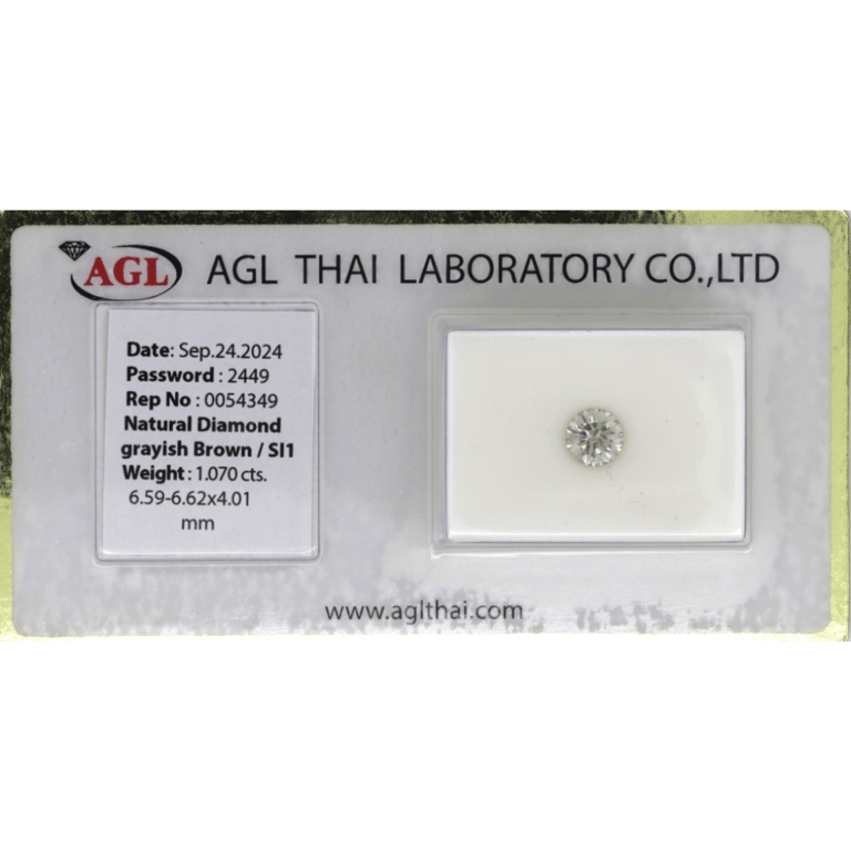 1.070CT CERTIFIED, NATURAL BROWN DIAMOND. Round Brilliant Cut, Greyish-Brown, Si1 Clarity, Loose, Unset. Stone Comes Sealed With Agl Report: 0054349. Valuations Provided by an Independent Third-Party Professional Not Directly Associated With Lloyds Auctions at AUD $$16,000.00This valuation has been conducted by an independent third-party professional. The valuation amount is an assessment by the issuing valuer and does not reflect the auction value of the item. Any inquiries regarding the valuation should be directed to the issuing valuer (refer to contact details on the certificate), as Lloyds Auctions has no affiliation or influence over the valuation, the valuer, or the stated amount. Condition: Good - Refer Images 06+45827+2340