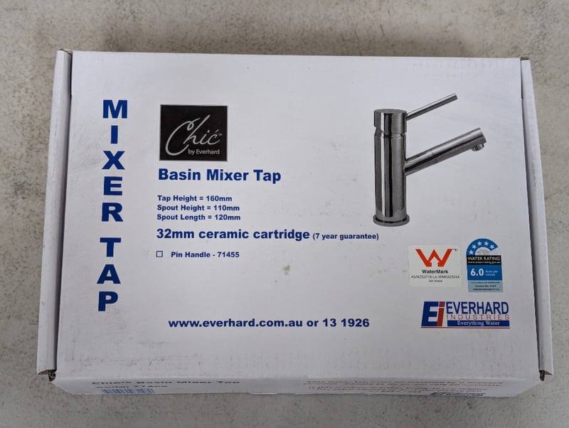RRP: $115, Everhard Classic Pin Basin Mixer, Model: 71455